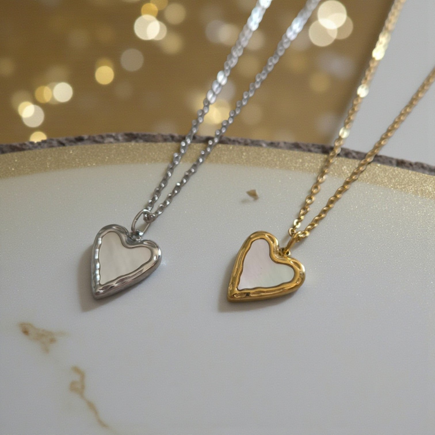 Eine zarte und romantische Halskette mit einer dünnen Kette und einem herzförmigen Anhänger aus Muschelmaterial. Sie vereint klare Ästhetik und Symbolik – perfekt für ein Geschenk von Herzen. Tragen Sie es allein für einen minimalistischen Look oder kombinieren Sie es mit anderen zarten Halsketten für einen modernen Lageneffekt.