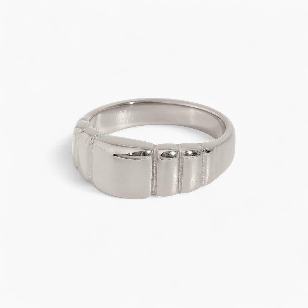 Ein stilvoller Ring mit klarem und dennoch beeindruckendem Design – eine massive, glatte Form mit dekorativen Linien, die Charakter und Stärke verleihen. Die breiteste Stelle beträgt 8 mm und ist damit ein auffälliger Akzent, der sowohl für den Alltag als auch für besondere Anlässe geeignet ist.