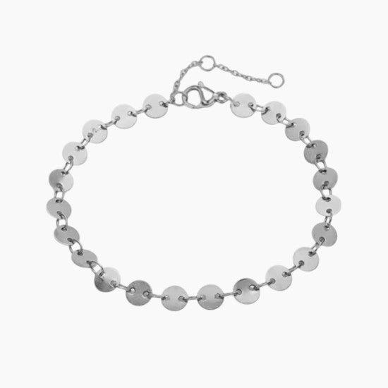 A delicate and minimalist bracelet made of woven round elements resembling small coins. Connected together in a delicate chain, they symbolize the connection between people - subtle but strong. Suitable for everyday life or as a symbolic gift for friendship.