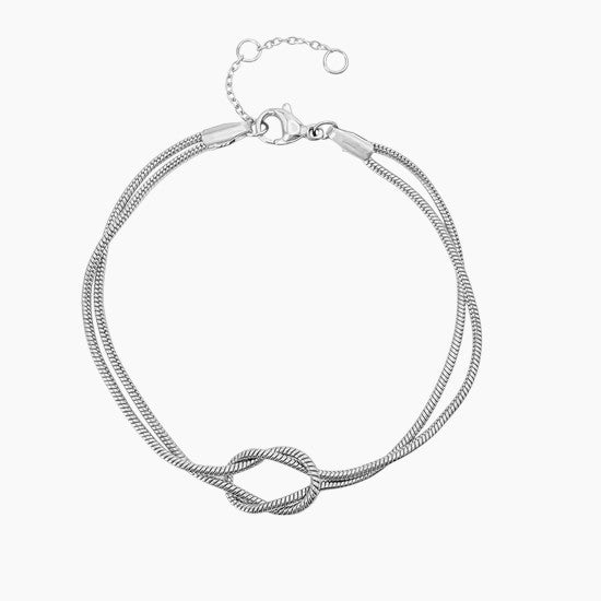Тази елегантна гривна комбинира класическа плетка "змийска верижка" с нежен възел – символ на връзката, устойчивостта и стила. Изчистеният ѝ силует я прави перфектна за всекидневна визия, а златният блясък добавя нотка на изтънченост. Идеална за носене самостоятелно или в комбинация с други гривни.