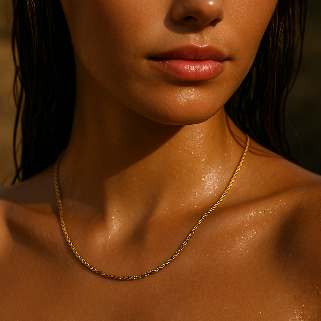 Класическо и вечно стилно – това въжено колие с ширина 3 мм и елегантна сплетка е идеален избор за самостоятелно носене или комбиниране с други колиета. Излъчва увереност, сила и изтънченост. Перфектно за ежедневието или като акцент за специални поводи.