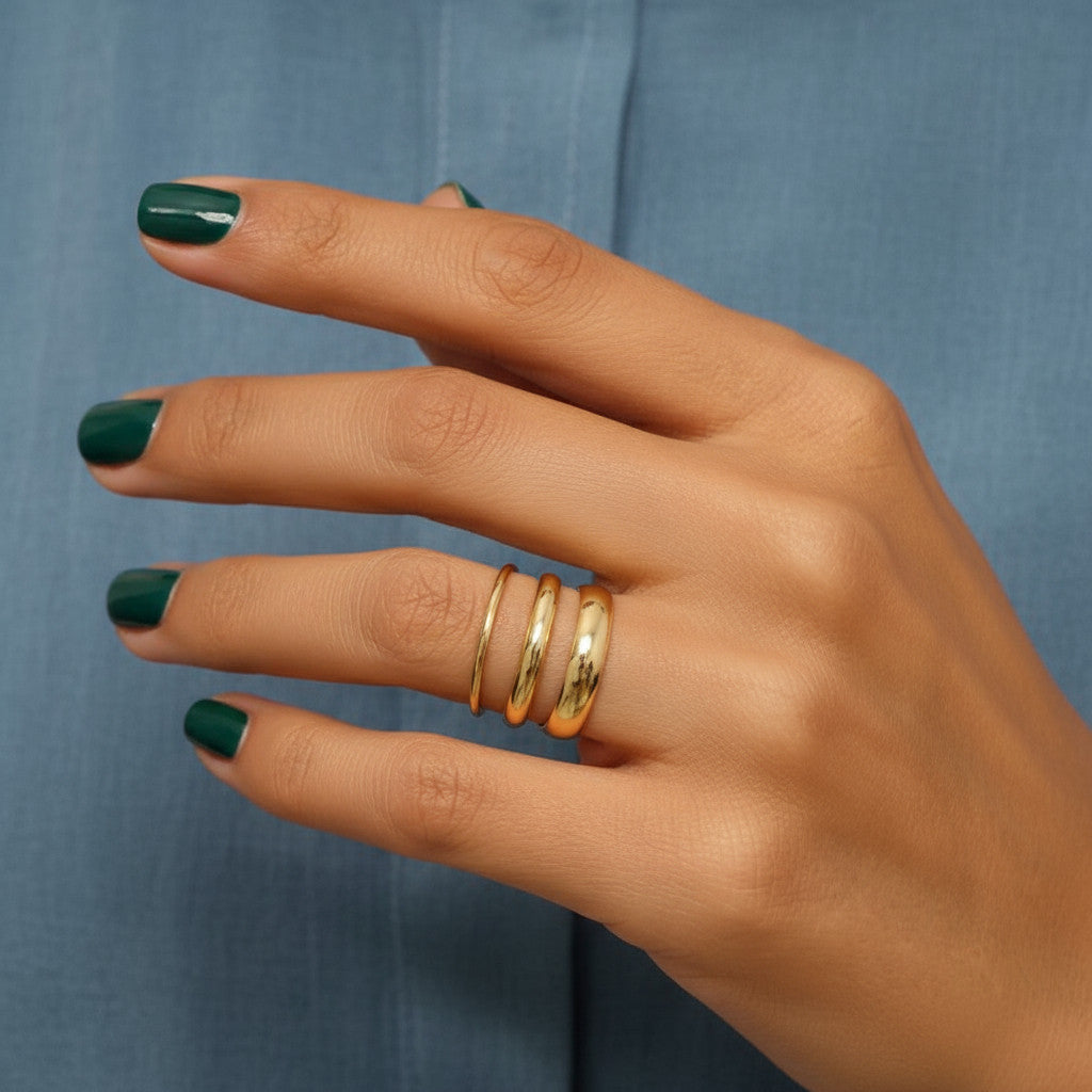 Описание: Този семпъл и стилен пръстен тип халка е създаден за почитателите на минимализма и изчистения дизайн. Предлага се в три варианта – 1 мм, 3 мм и 6 мм широчина, за да пасне перфектно както за деликатно ежедневно бижу, така и за по-осезаем акцент. Комбинирай различни широчини за модерен layered ефект или носи самостоятелно за изтънчен завършек.